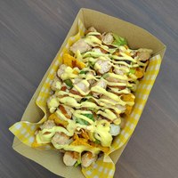 Tortilla Chips Banat bersama Chicken BBQ Banat yang tak perlu diperkenalkan lagi. Sos kuning & sos BBQ homemade tambah dengan ayam seketul-seketul, puas hati makan!